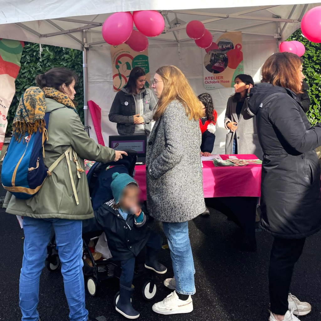 Mercredi 25 et Samedi 28 octobre 2023 a eu lieu un atelier portant essentiellement autour du dépistage du cancer du sein 🎀 : démonstration de l’autopalpation 🙋♀️ , distribution de flyer explicatif 📑, mise en avant de l’intérêt du dépistage et de ses modalités 🎗 , etc..